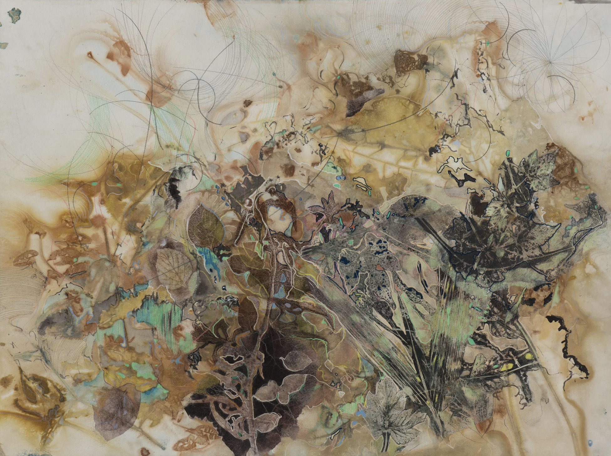 Jowita begins her artistic practice in nature. With each journey into the forest, she delves into the depths of the thicket uncovering and discovering the secrets of the understory. Much like a scientist, Jowita studies and collects flora specimens. In her studio, she employs eco-printing techniques using high-temperature steam that unearths unique colors from her collected treasures. She further experiments with mixed media, painting, and drawing, revealing a final work of art that reflects the interconnection and vitality of the undergrowth within the ecosystem.