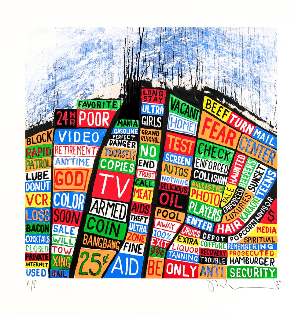 Coinciding with Radiohead’s sold-out London concerts as part of their major European tour, this unmissable exhibition offers fans a rare opportunity to explore sixteen prints curated from Donwood’s vast personal archive. Spanning his celebrated partnership with one of the world’s most influential bands, the show features collectable screenprints including artwork the seminal album ‘OK Computer’ and the newly rereleased ‘Pacific Coast 2024’, originally created for the band’s 2003 album ‘Hail to the Thief’.